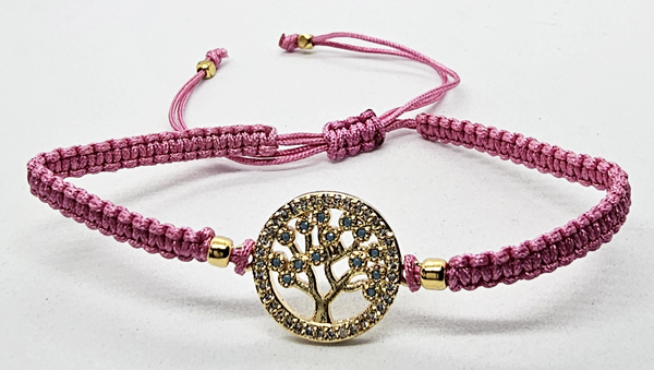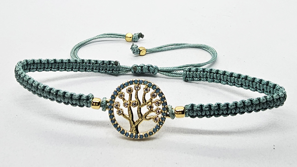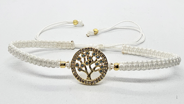 BRACCIALE FULL MACRAME’ CON MEDAGLIA ALBERO DELLA VITA IN METALLO GOLD PLATED CON ZIRCONI