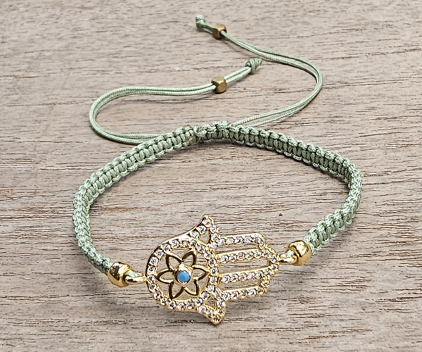 BRACCIALE FULL MACRAME’ CON MEDAGLIA IN METALLO GOLD PLATED CON ZIRCONI MANO DI FATIMA CON MANDALA