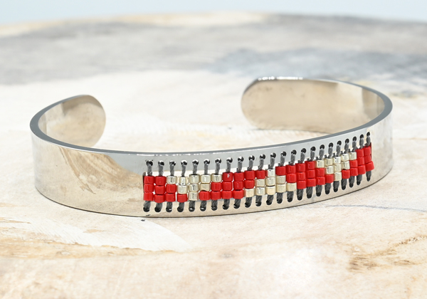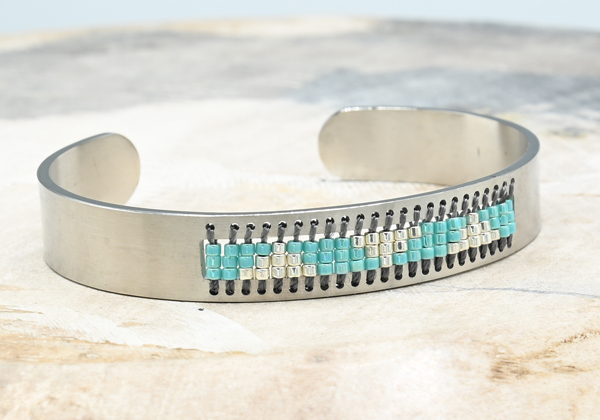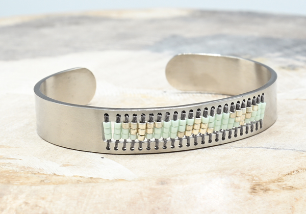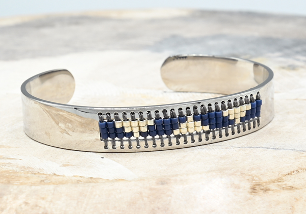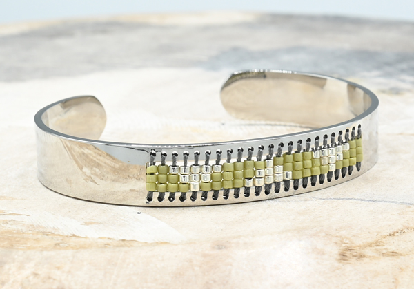 BRACCIALE PLATE BRASS SILVER PLATED CON PERLINE MIUKI 3 RIGHE GUNUNG MOTIF