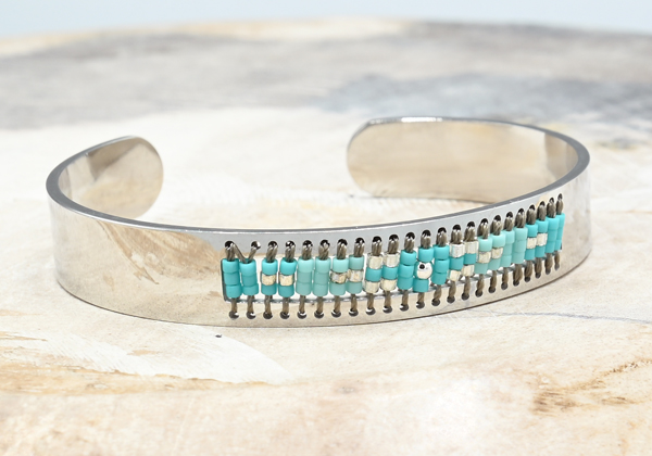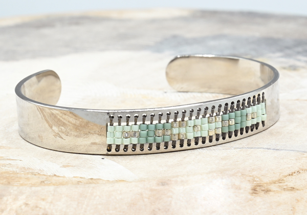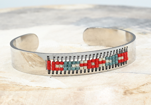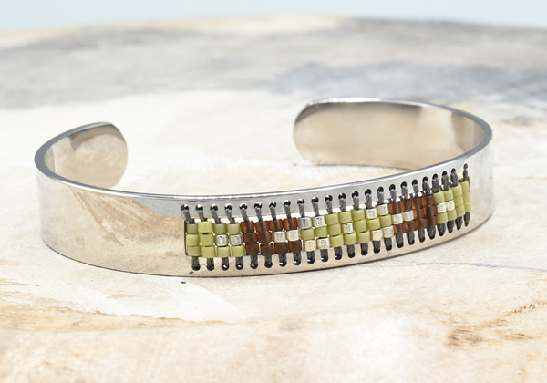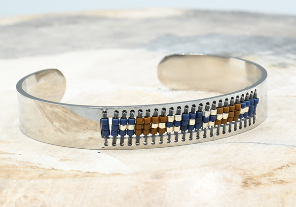 BRACCIALE PLATE BRASS SILVER PLATED CON PERLINE MIUKI 3 RIGHE INDIAN CROSS MOTIF