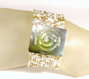 Bracciali rigidi con ciondolo madreperla, BRACCIALI CON PERLINE RIGIDI