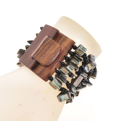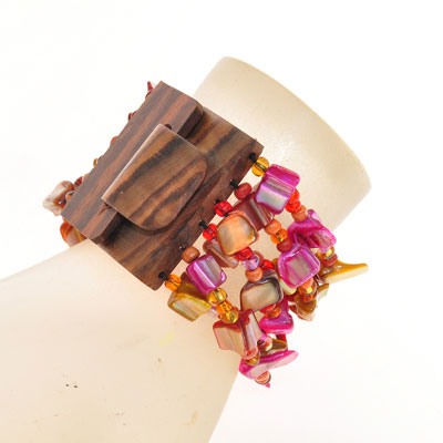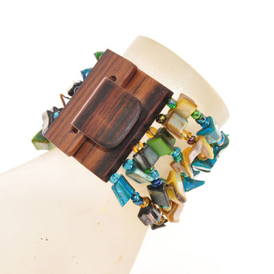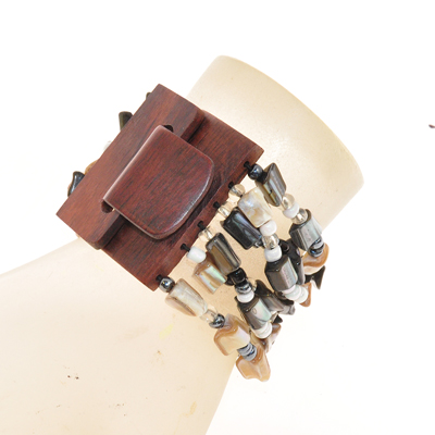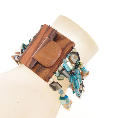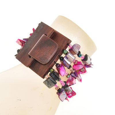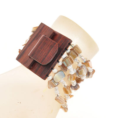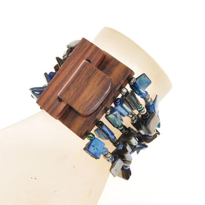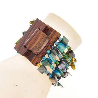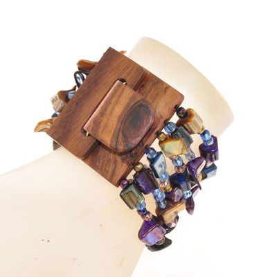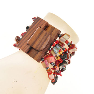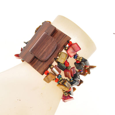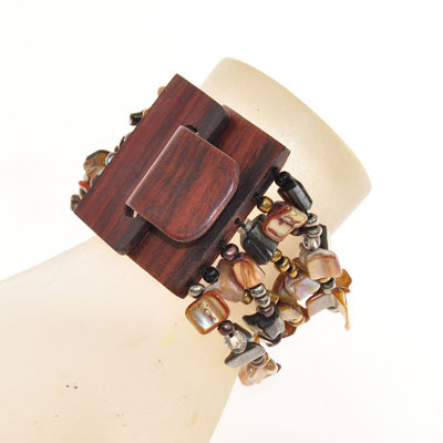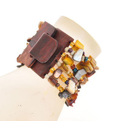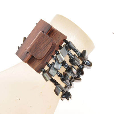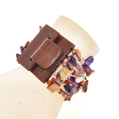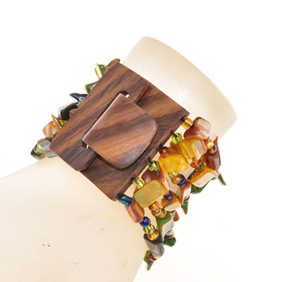 BRACCIALI ELASTICI 6 RIGHE NUGGET KOTAK FIBBIA IN LEGNO