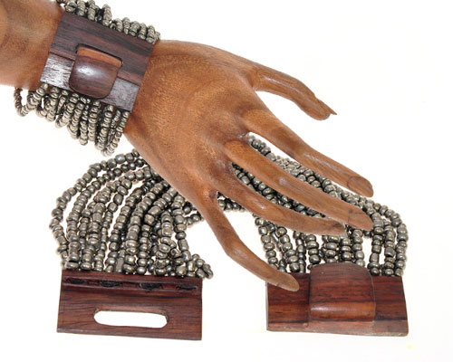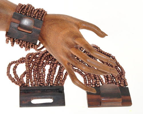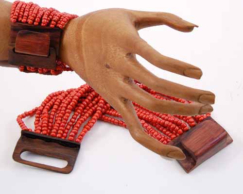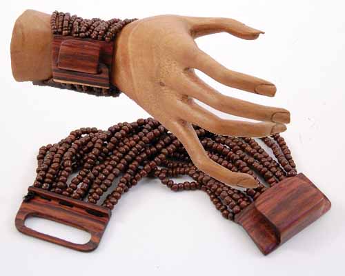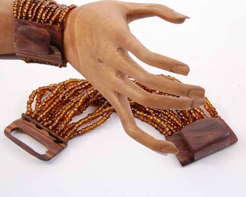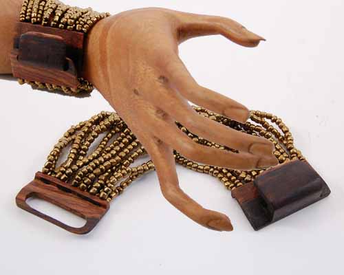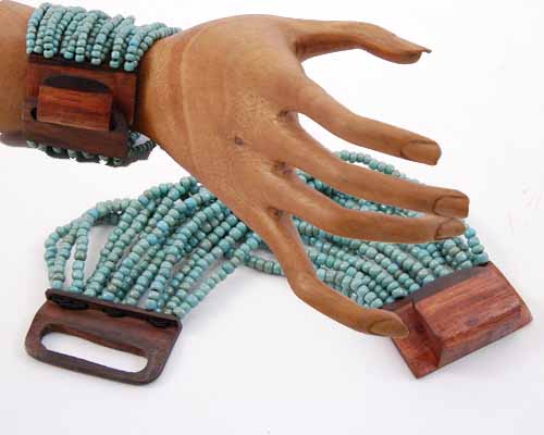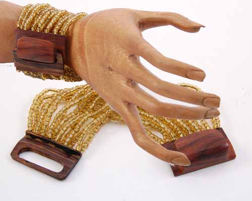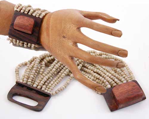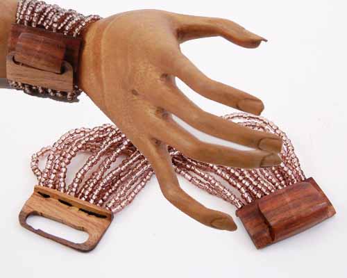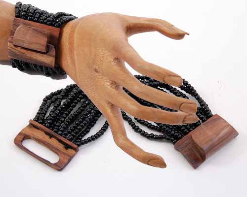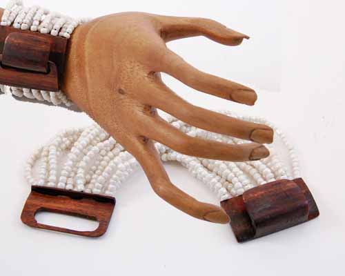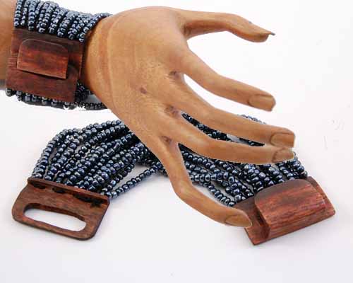 BRACCIALI ELASTICI PERLINE E FIBBIA IN LEGNO
