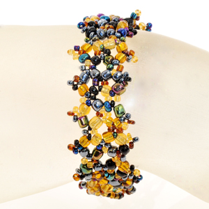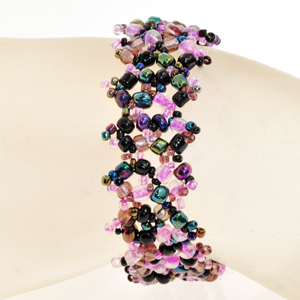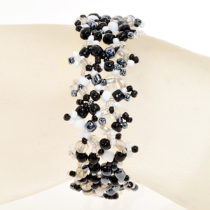 BRACCIALI CON PERLINE MORBIDI, Bracciali aperti con perline a rete