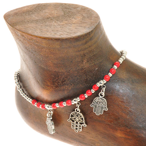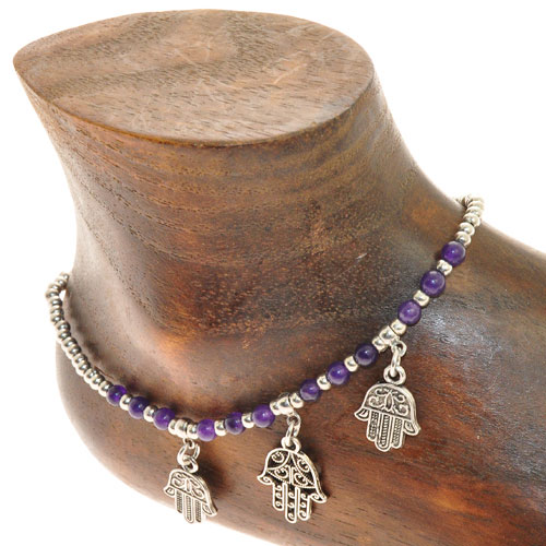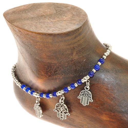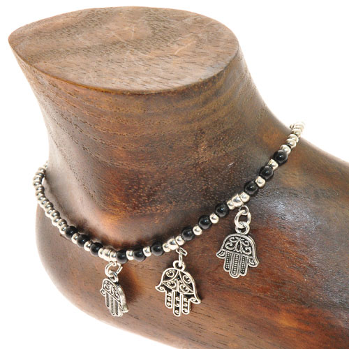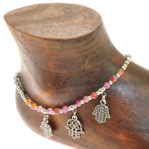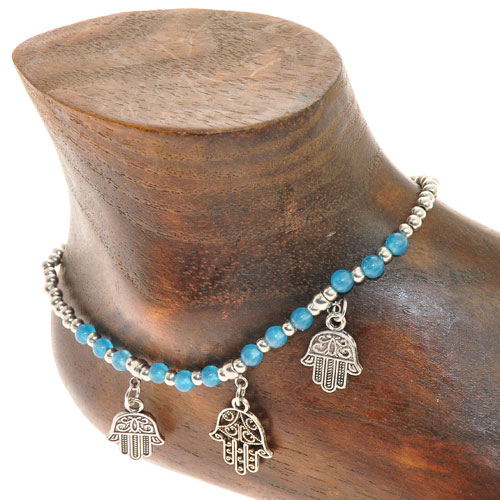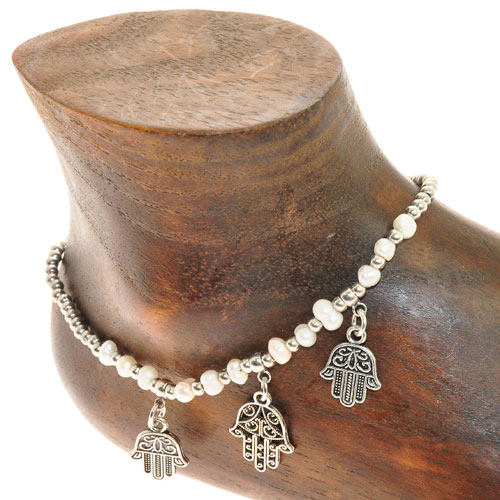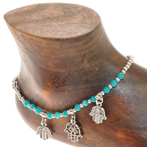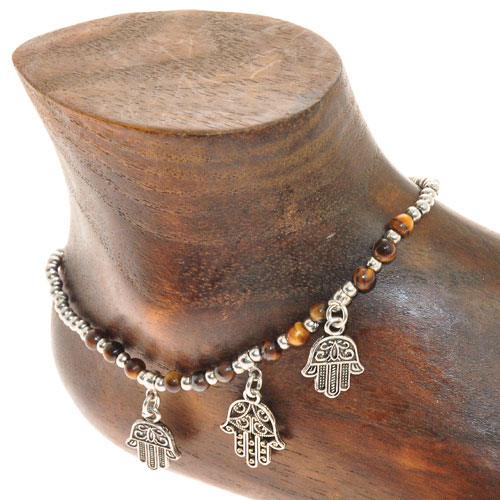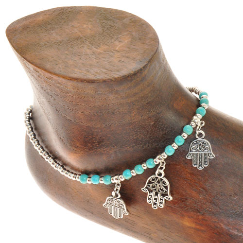 CAVIGLIERE SILVER PLATED CON CORDINO CERATO E PENDENTI MANO FATIMA
