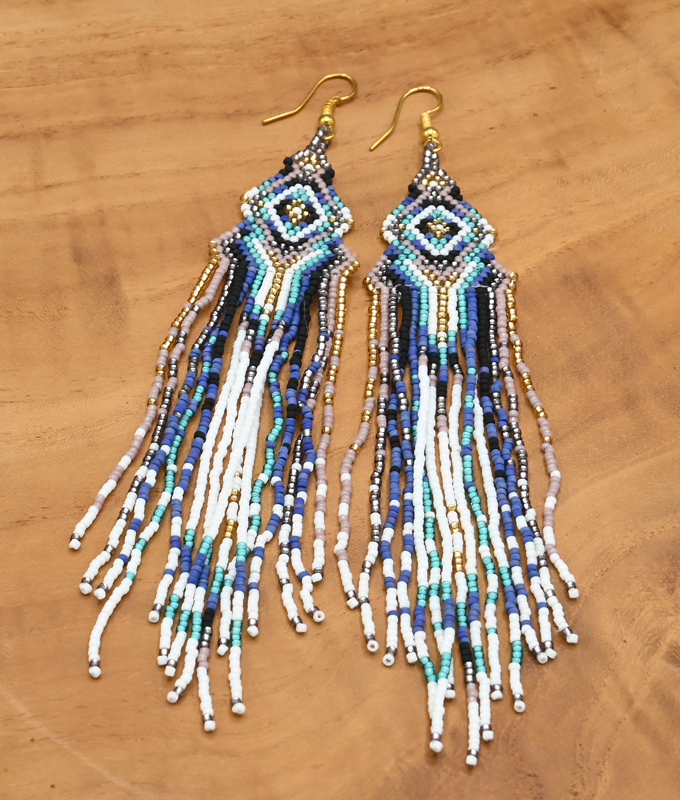 ORECCHINI CON FRANGE LUNGHE STILE NATIVE AMERICA MGB 15/0