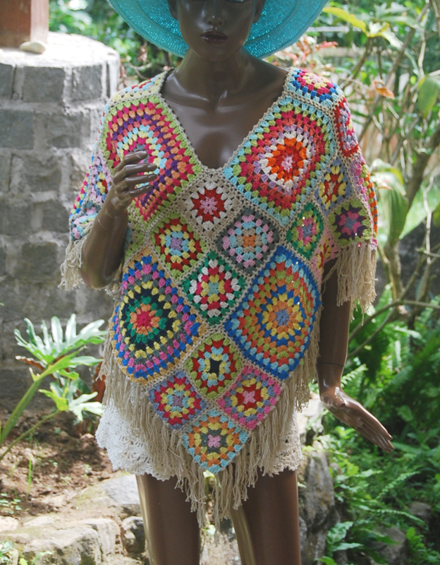 PONCHO MISURA MEDIA IN COTONE LAVORATO AD UNCINETTO MOTIVO BOLA MISTI
