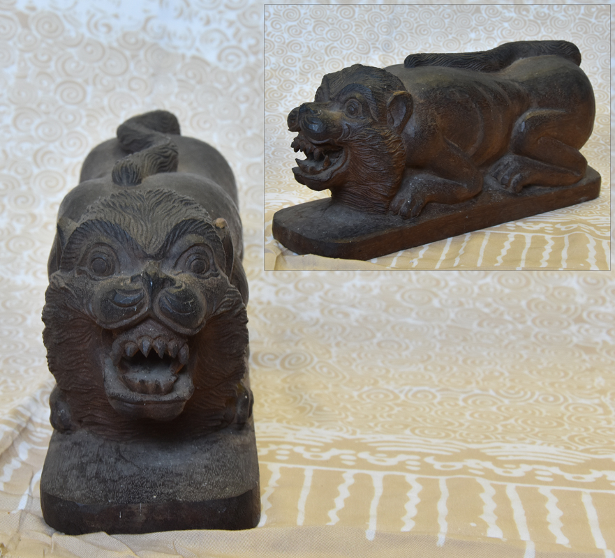 SCULTURA IN LEGNO LEONE ACCUCCIATO CM 25X11